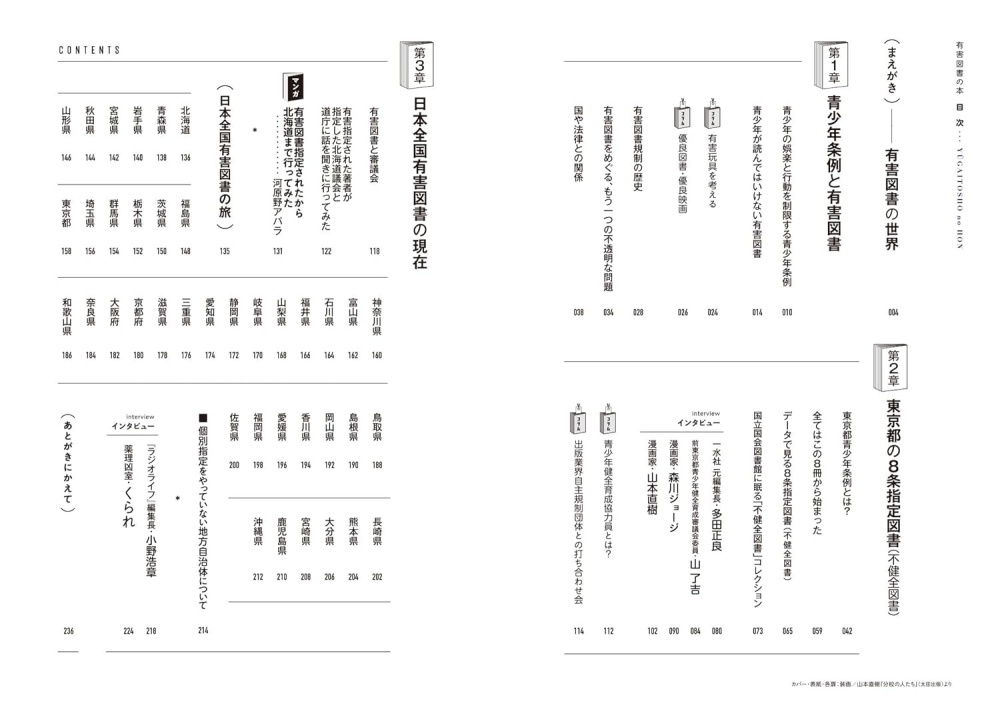 全国の地方自治体が指定する有害図書、そして東京都が指定する不健全図書(8条指定図書)について、事例と議論を総まとめ。どこのような本が指定されるのか? 誰がどのように指定しているのか? 指定されるとどんな影響があり、どのような問題を引き起こしているのか? 「有害」の名のもとに多くの本を切り捨ててきた制度を見つめ直す。