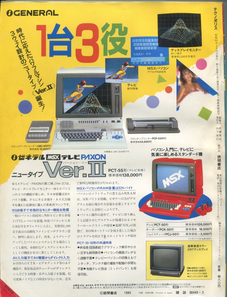 【中古書籍】テクノポリス 1985年3月号