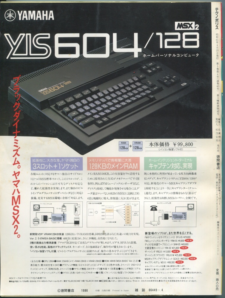 【中古書籍】テクノポリス 1986年4月号