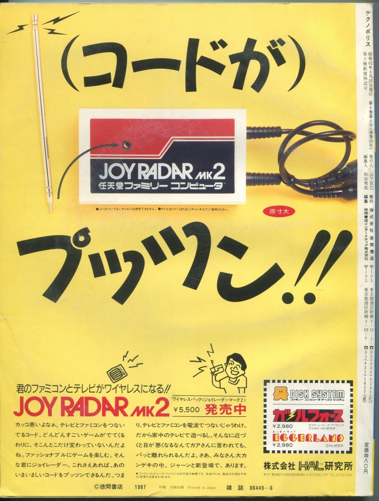 【中古書籍】テクノポリス 1987年6月号