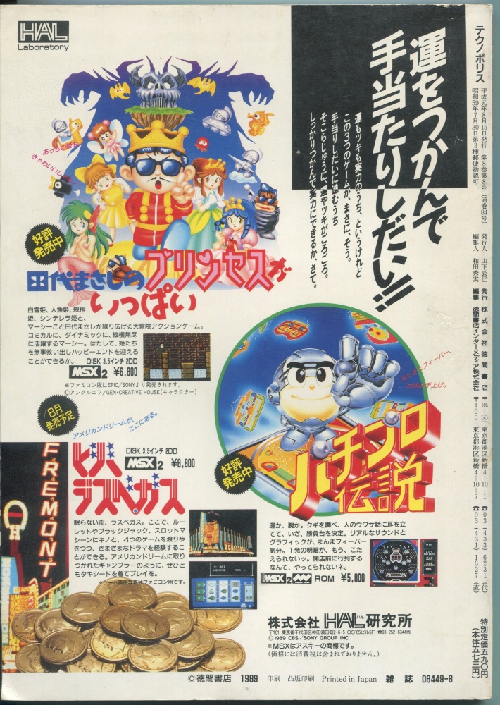 【中古書籍】テクノポリス 1989年8月号