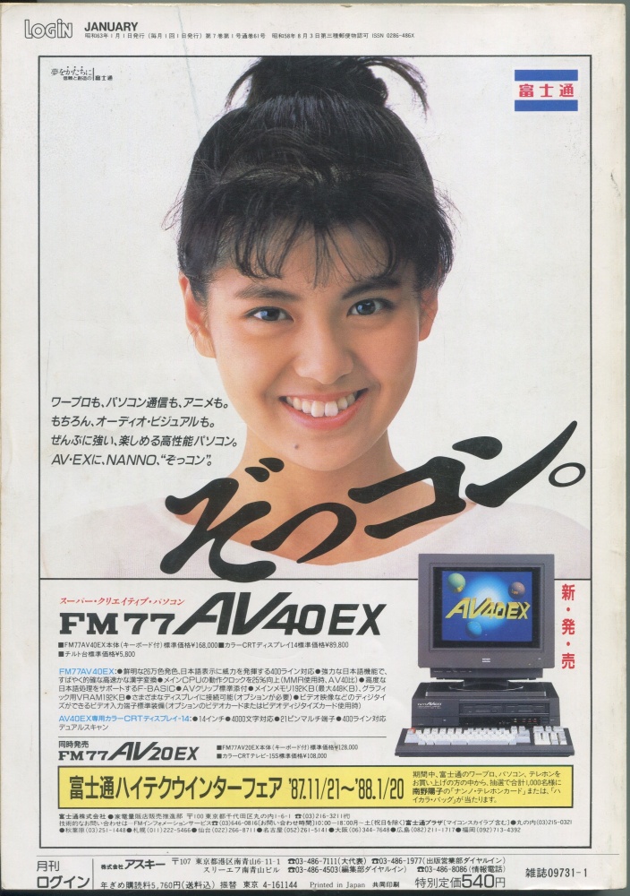 【中古書籍】月刊LOGIN(ログイン) 1988年1月号