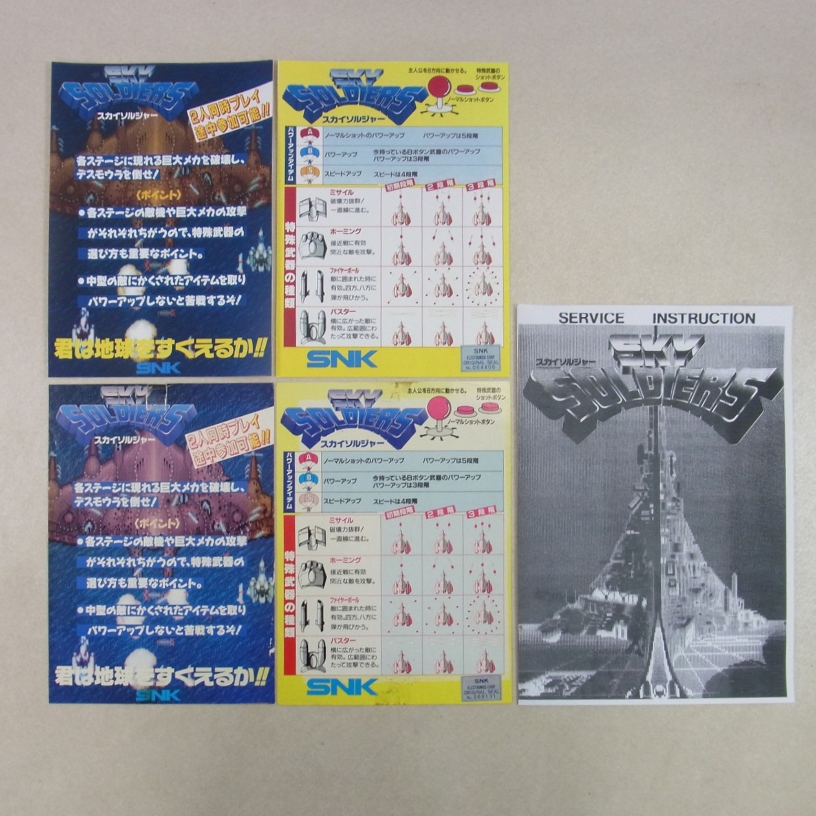 【中古アーケード基板】エスエヌケイ/SNK スカイソルジャー SKY SOLDIERS インスト純正 動作確認済