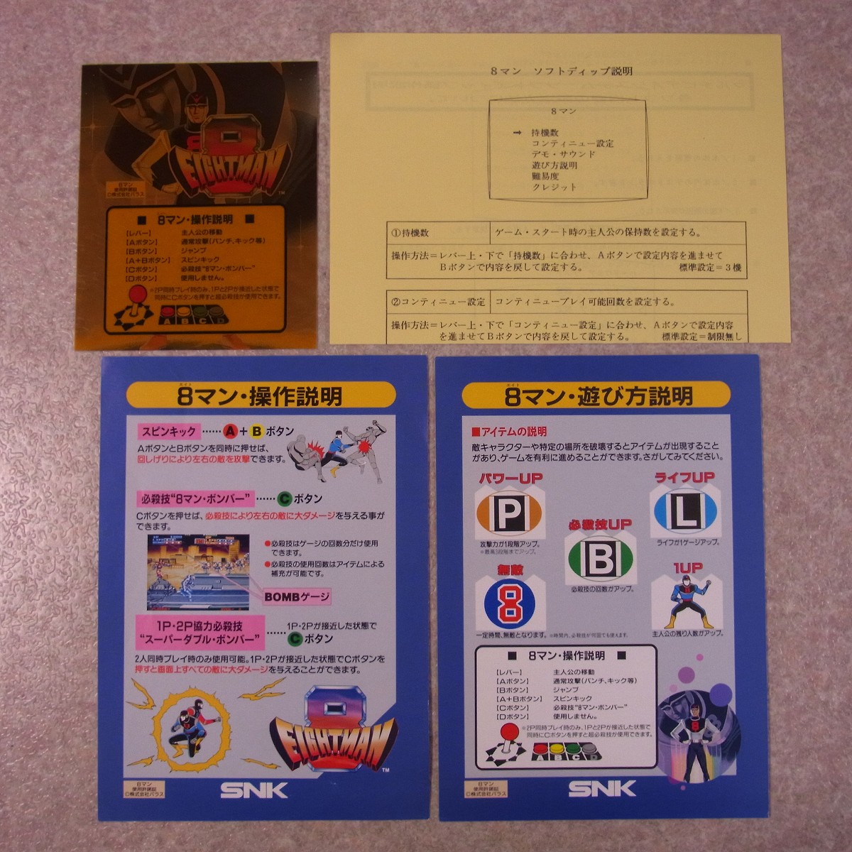 【中古アーケード基板】エスエヌケイ/SNK 8マン エイトマン EIGHTMAN MVS インストプラ板純正