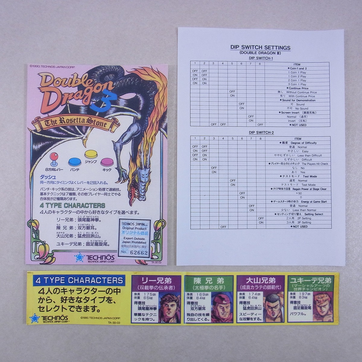 【中古アーケード基板】テクノスジャパン/TECHNOS ダブルドラゴン3 DOUBLE DRAGON 3 双截龍 動作確認済