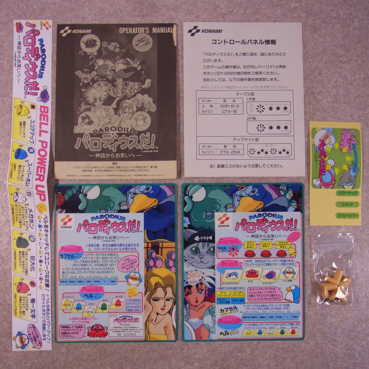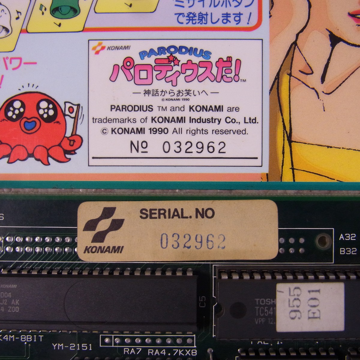 【中古アーケード基板】コナミ/KONAMI パロディウスだ! 神話からお笑いへ PARODIUS シリアル一致 イン取純正 コンパネシール付き