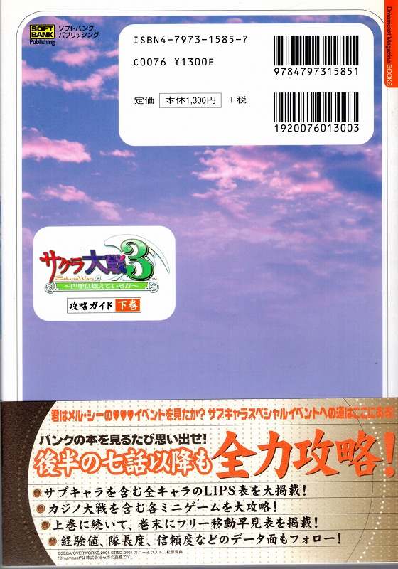【中古書籍】サクラ大戦3 巴里は燃えているか 攻略ガイド 下巻