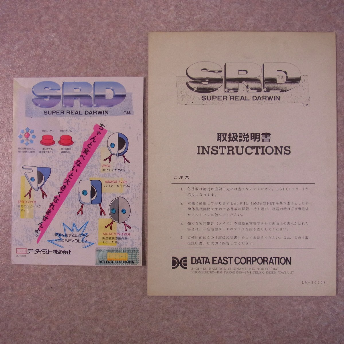 【中古アーケード基板】データイースト/DATA EAST SRD スーパーリアルダーウィン SUPER REAL DARWIN DECO インスト1枚、取説純正
