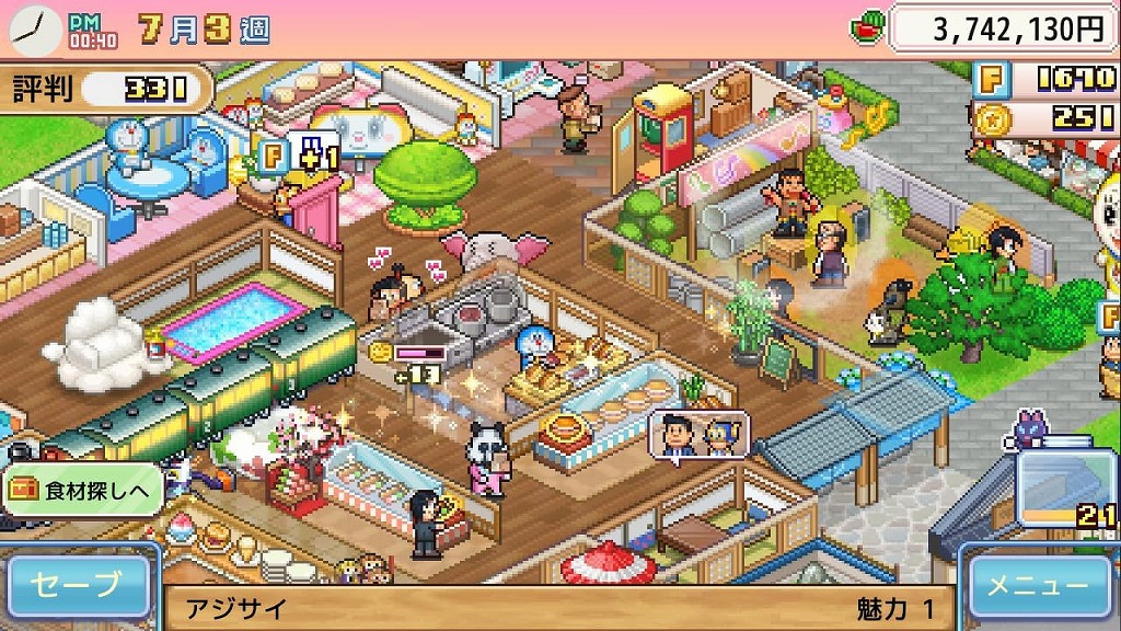 お客さんはすべてFキャラ!どら焼きのお店屋さんゲーム。ひみつ道具でのび太たちを導いてめざせ日本一!